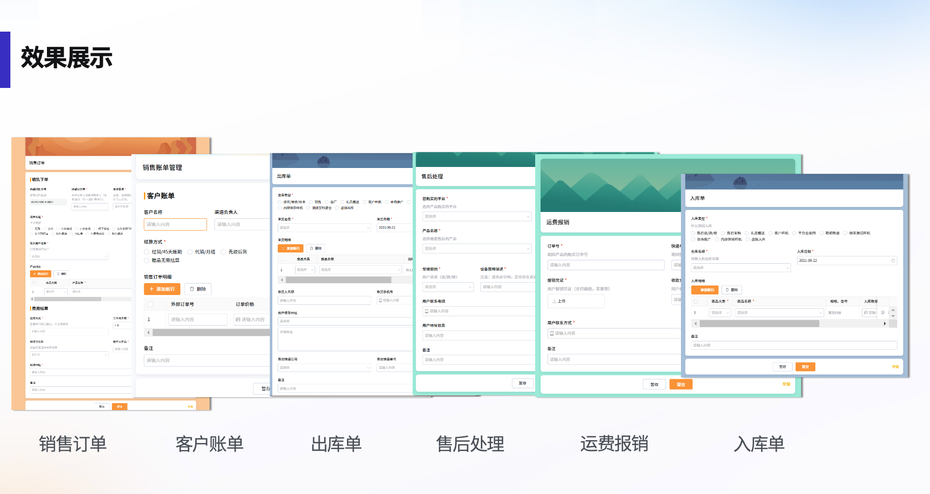 通过轻流·无代码系统搭建平台,上线四个业务模块:售后退换货管理、销售管理、财务管理及库存管理。(基础信息库用以维护产品信息和仓库信息)