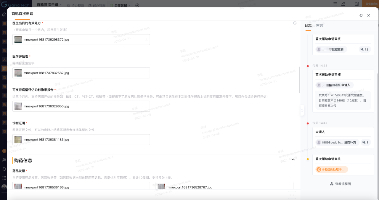 通过轻流的角色创建、ocr识别、权限设置和视图功能,对不同的角色呈现不同的视图和分配不同的流程负责人,减少患者信息录入难度和申请材料审核步骤,减少无效沟通协调的时间。