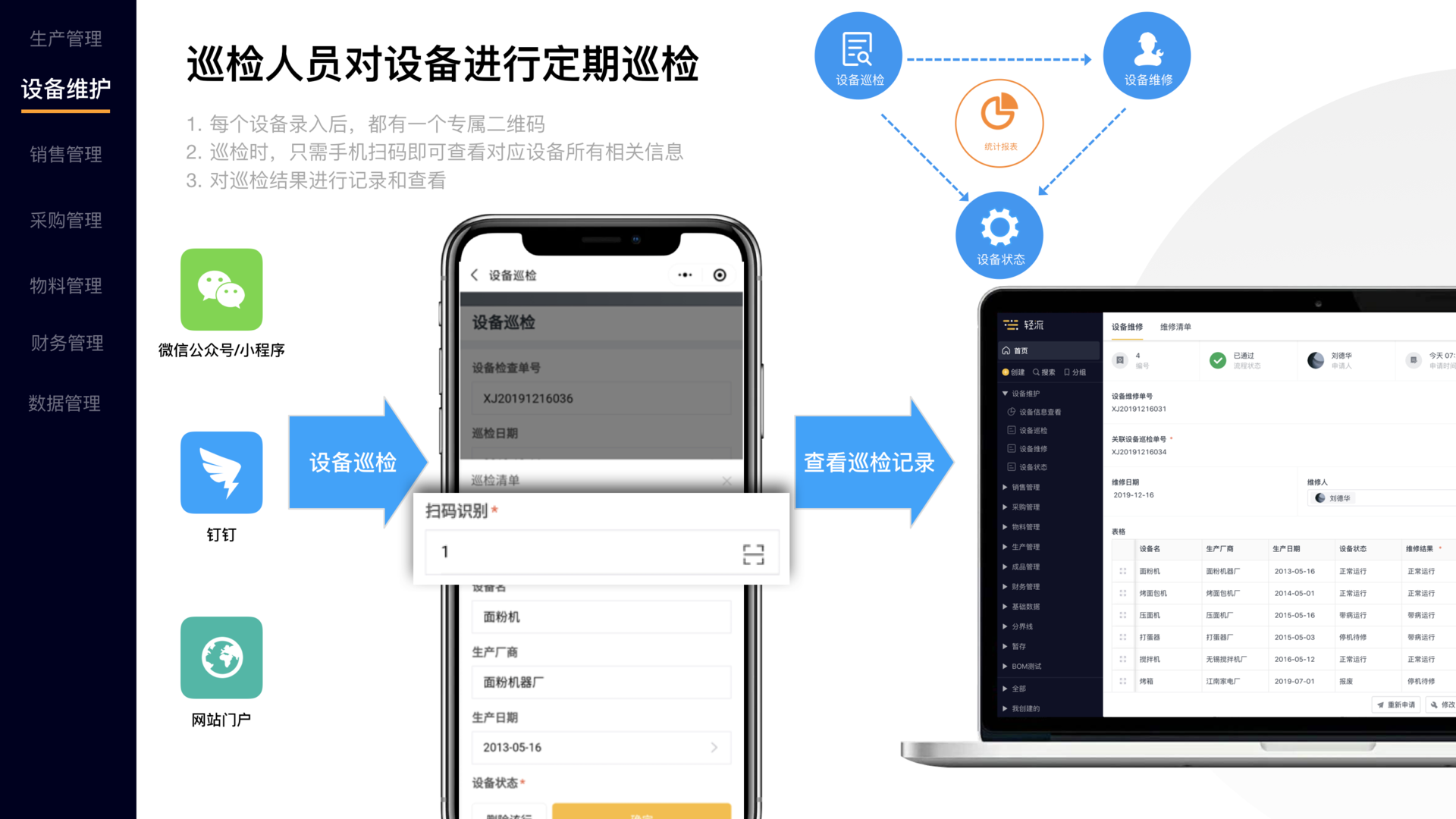 尤其是在制造行业,对仪器设备是高标准管理。机器的损耗直接影响企业生产效率,所以要进行标准化和高效率的定期设备巡检,保证生产不因机器的损坏而断裂。
