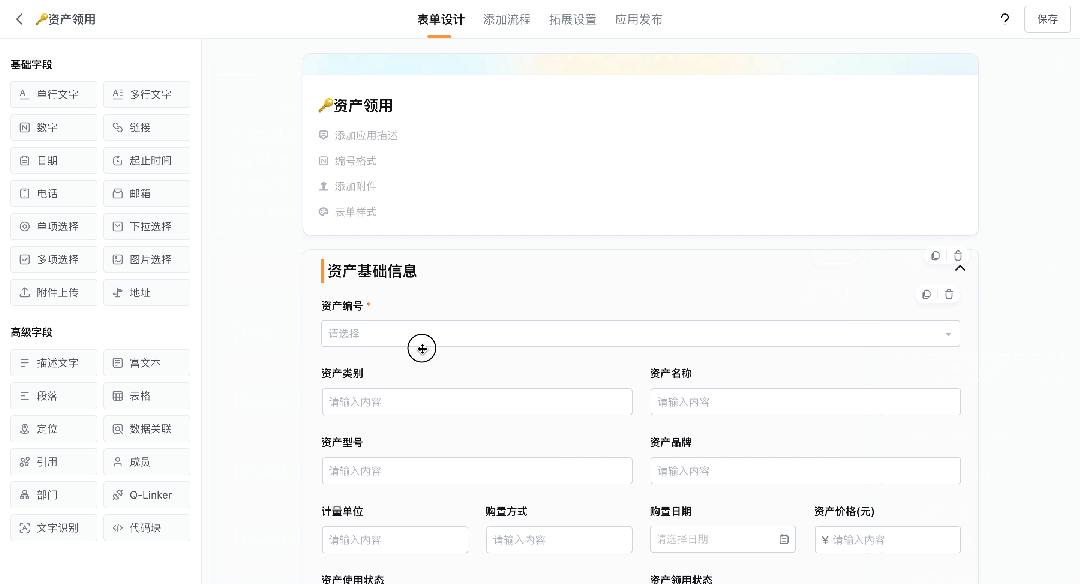 🌰举个例子:资产领用场景-选中资产编号后自动关联资产信息⬇️